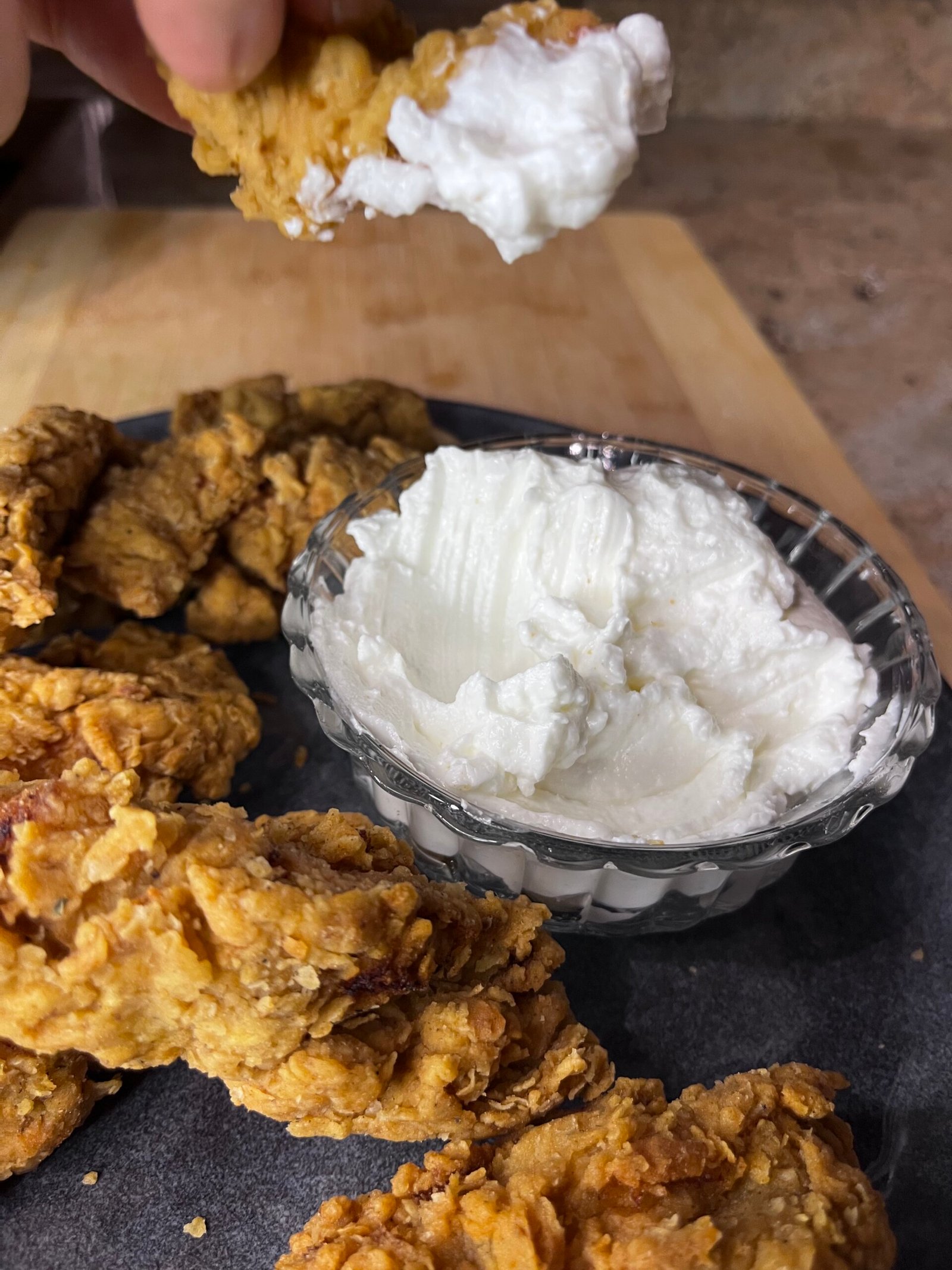 If the dip becomes too thick, add a small amount of very cold water while mixing. This keeps the texture silky without breaking it.